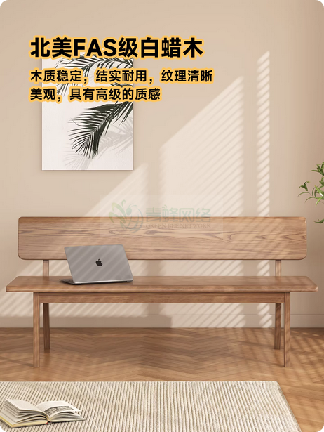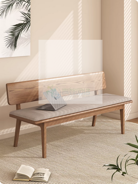 实木长条凳带靠背家用床尾凳软包长凳简约吃饭长椅白蜡木换鞋凳子