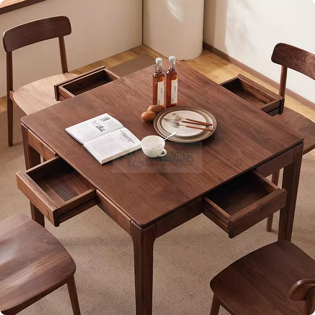 【北美FAS黑胡桃木】100*100*76单桌带抽屉
