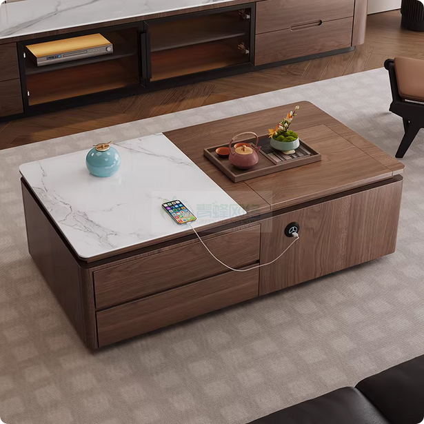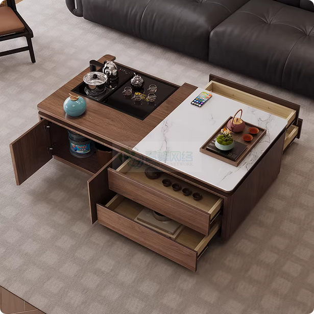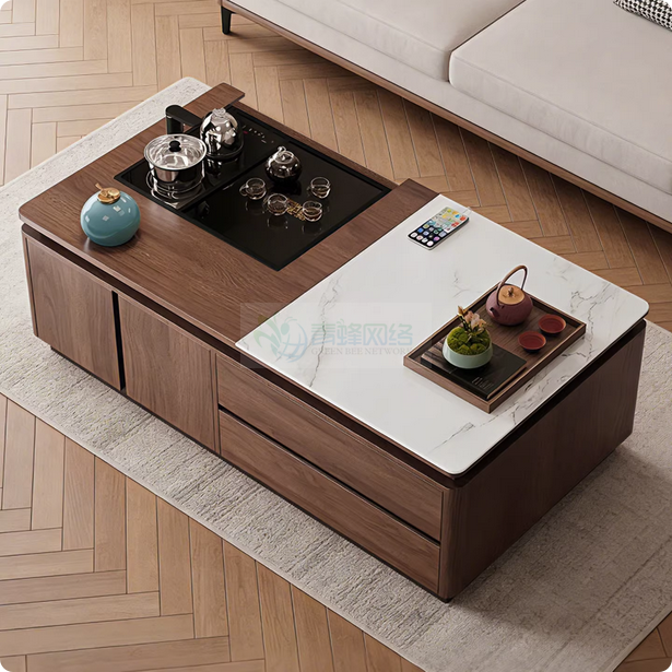 2026新款客厅智能升降功夫茶几全实木岩板简约现代泡茶台储物...