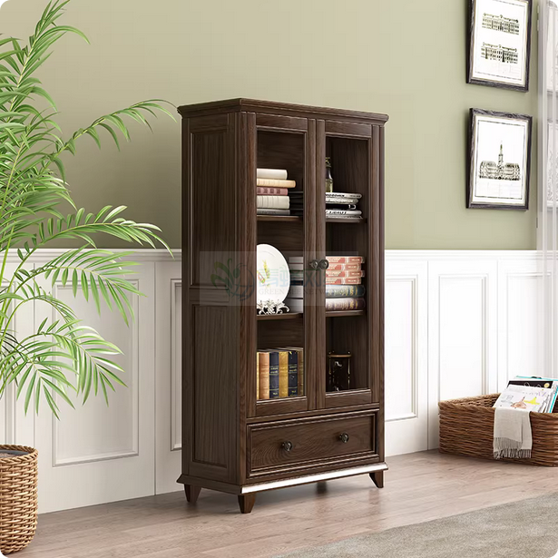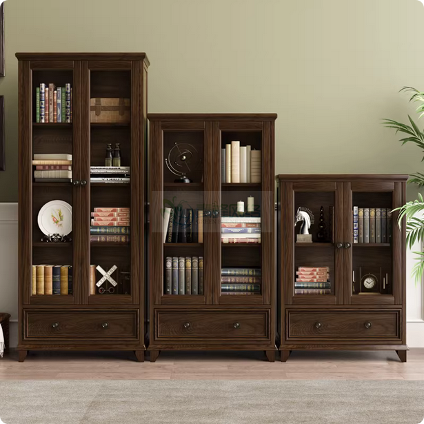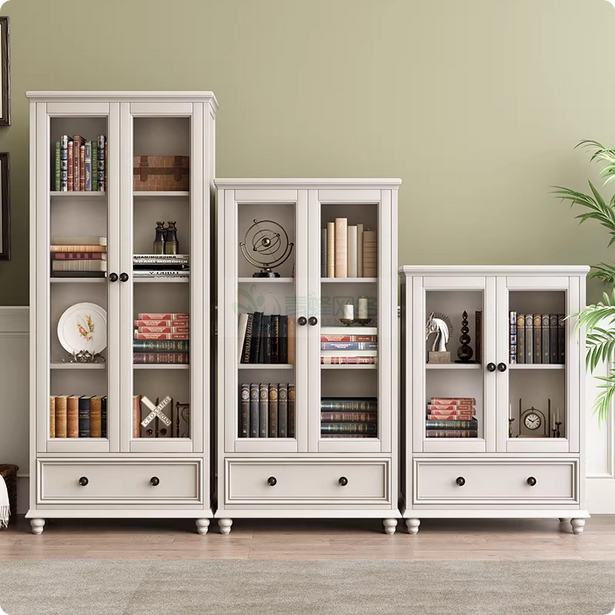 美式全实木组合书柜架落地靠墙小储物柜客厅边柜小户型卧室置物架