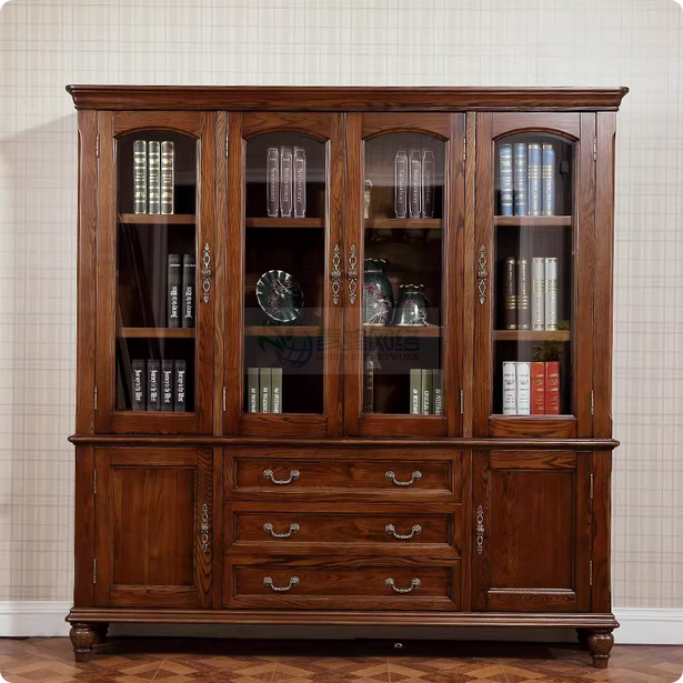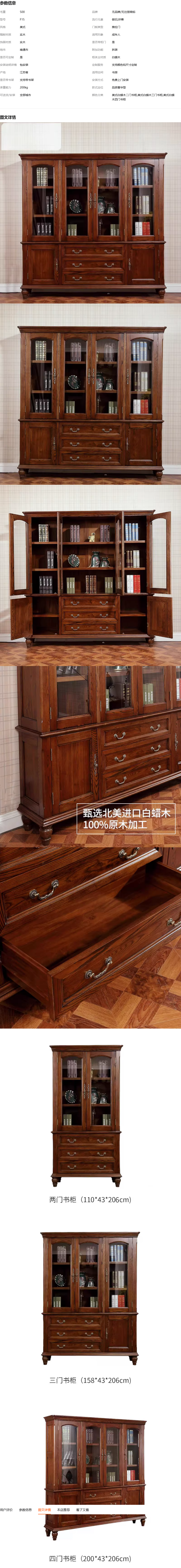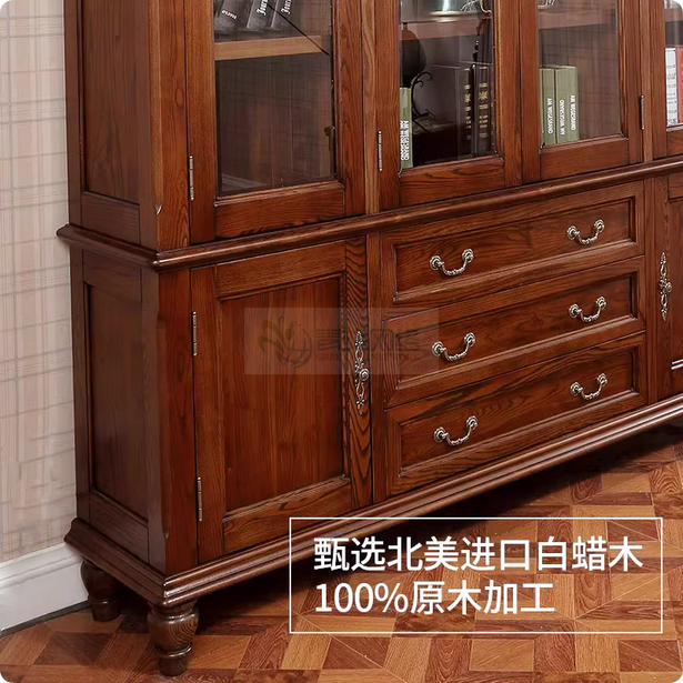美式白蜡木书柜组合书橱储物柜客厅展示柜书架简约文件柜落地书柜